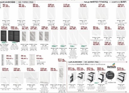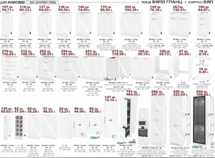 Модули горен ред: БФ-Бяло гланц-05-18; БФ-Бяло гланц-05-4; БФ-Бяло гланц-05-2; БФ-Бяло гланц-05-1; БФ-Бяло гланц-05-17; БФ-Бяло гланц-05-4; БФ-Бяло гланц-05-13; БФ-Бяло гланц-05-2