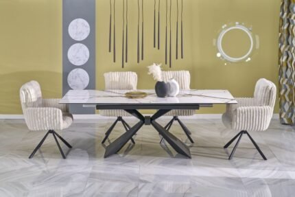 Масата може да бъде комбинирана със стол Manfred бял или стол RIO бял