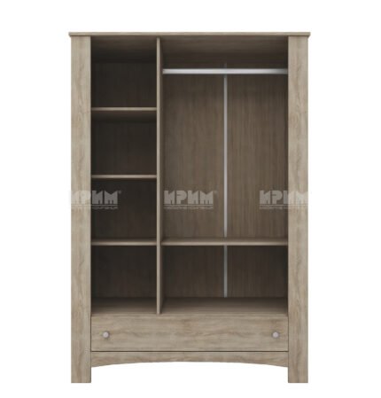 Гардероб с три крила и с габаритни размери 1860/525/2090. Вътрешното му разпределение е с лост от двете страни и рафтове на средния модул.