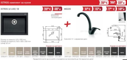 Комплектът включва: Мивка Istros ( 61x50 ) 1B + смесител Mezzo