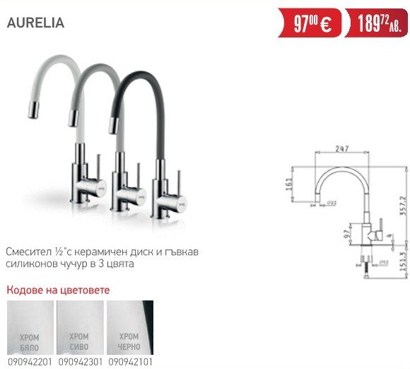 Смесител с керамичен диск и гъвкав силиконов чучур в 3 цвята