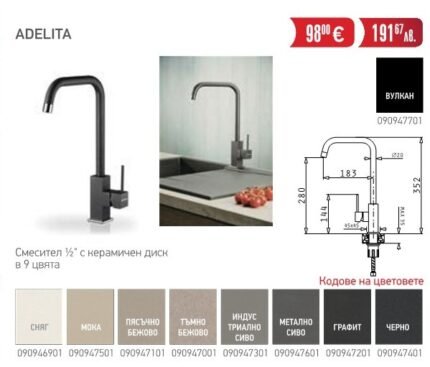 Смесителна батерия за кухня в 8 цвята