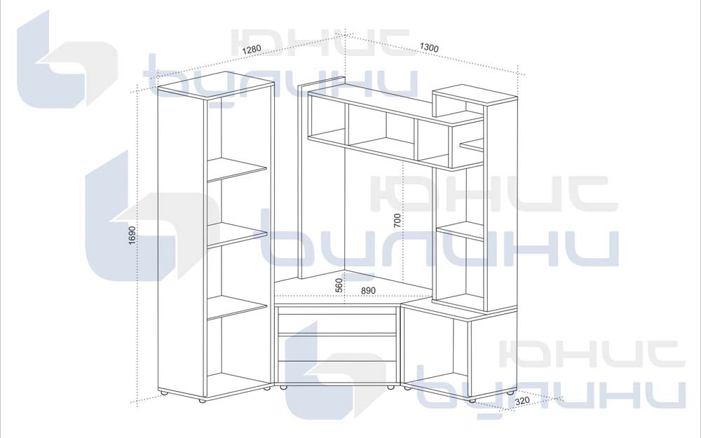 Размери: ширина-3200/дълбочина-525/ височина-2160мм.