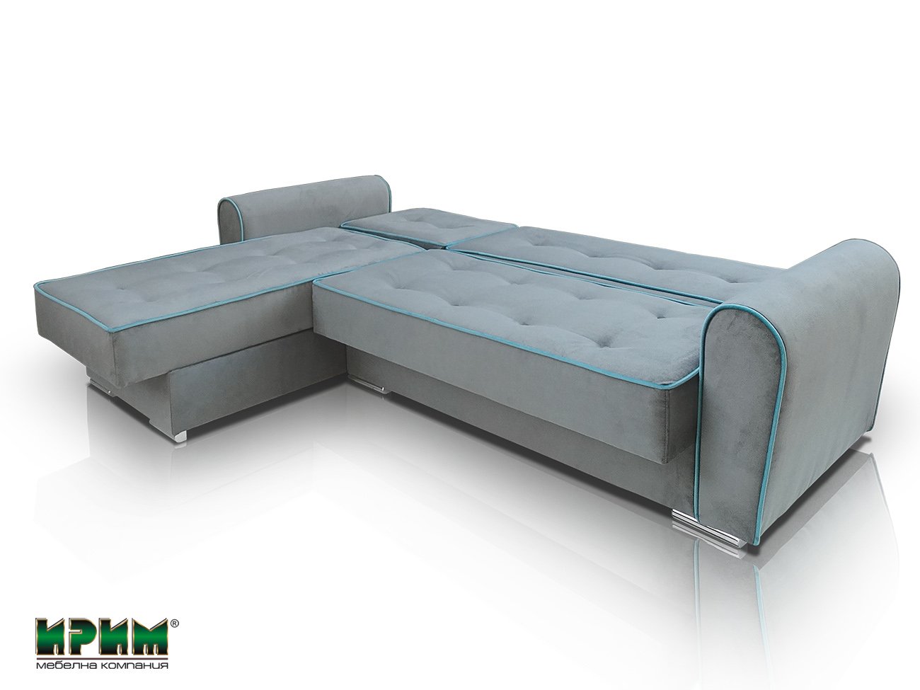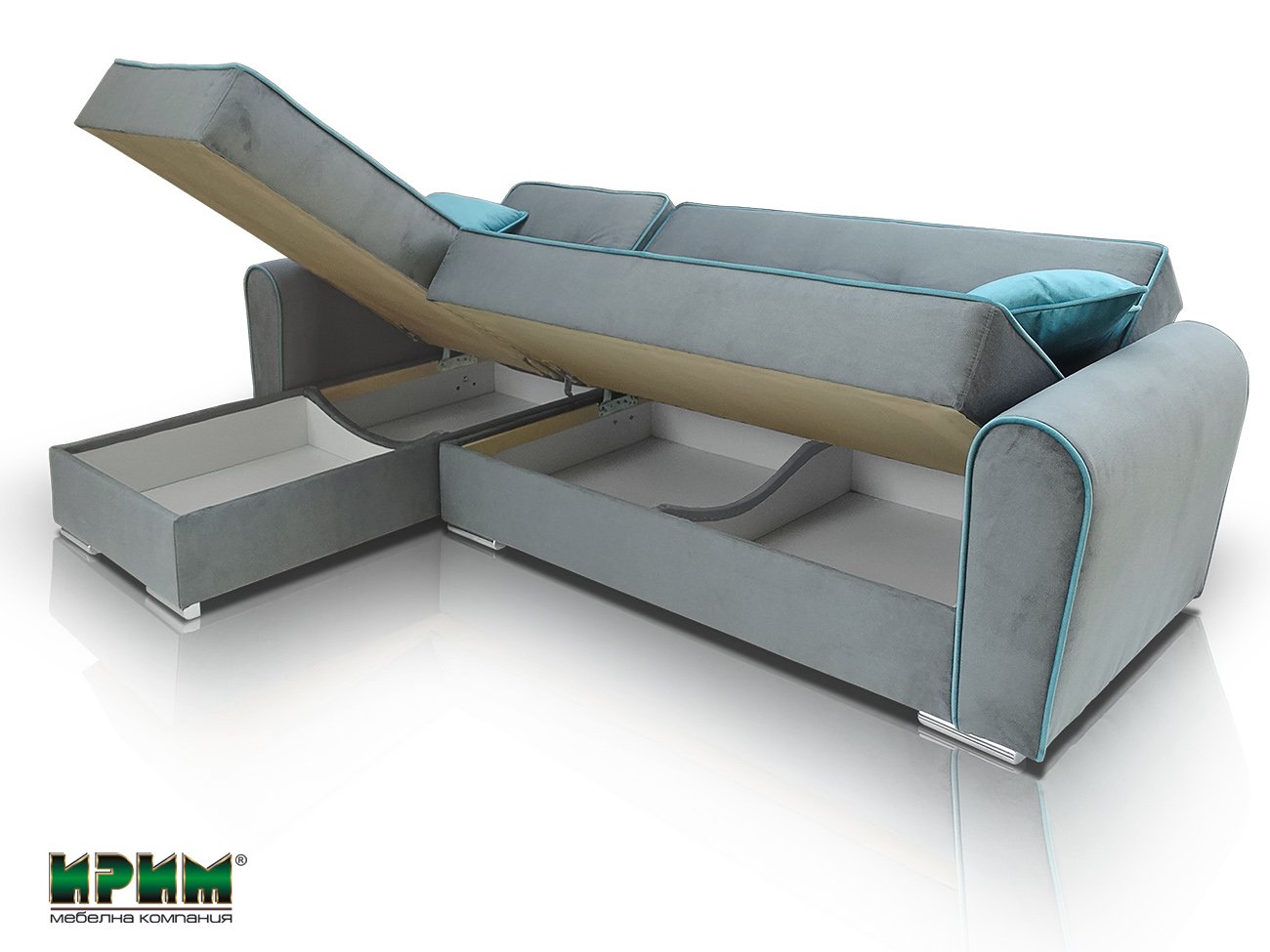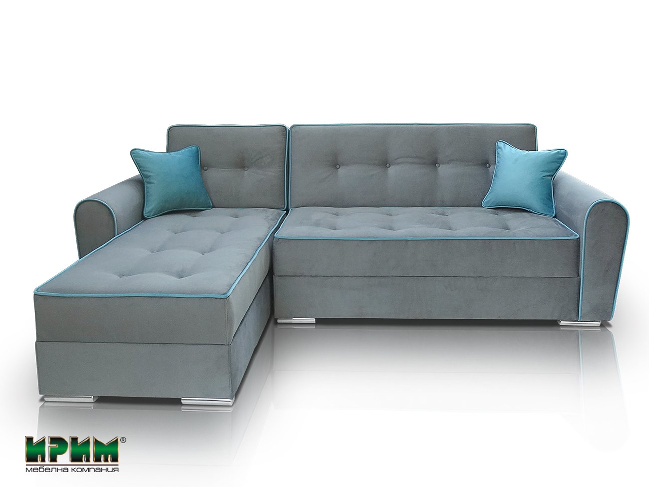 Класически ъглов диван, приравнен към днешните стандарти от нашите дизайнери. Елегантните декоративни възглавници и паспел, в изискан цвят, се интегрират успешно за постигане на окончателната визия. Изобилие от скрито пространство в моментален достъп чрез клик-клак механизма на функцията за сън. Рамката от солидна екологична дървесина с ламелно окачване без провисване гарантират устойчивост и комфорт.