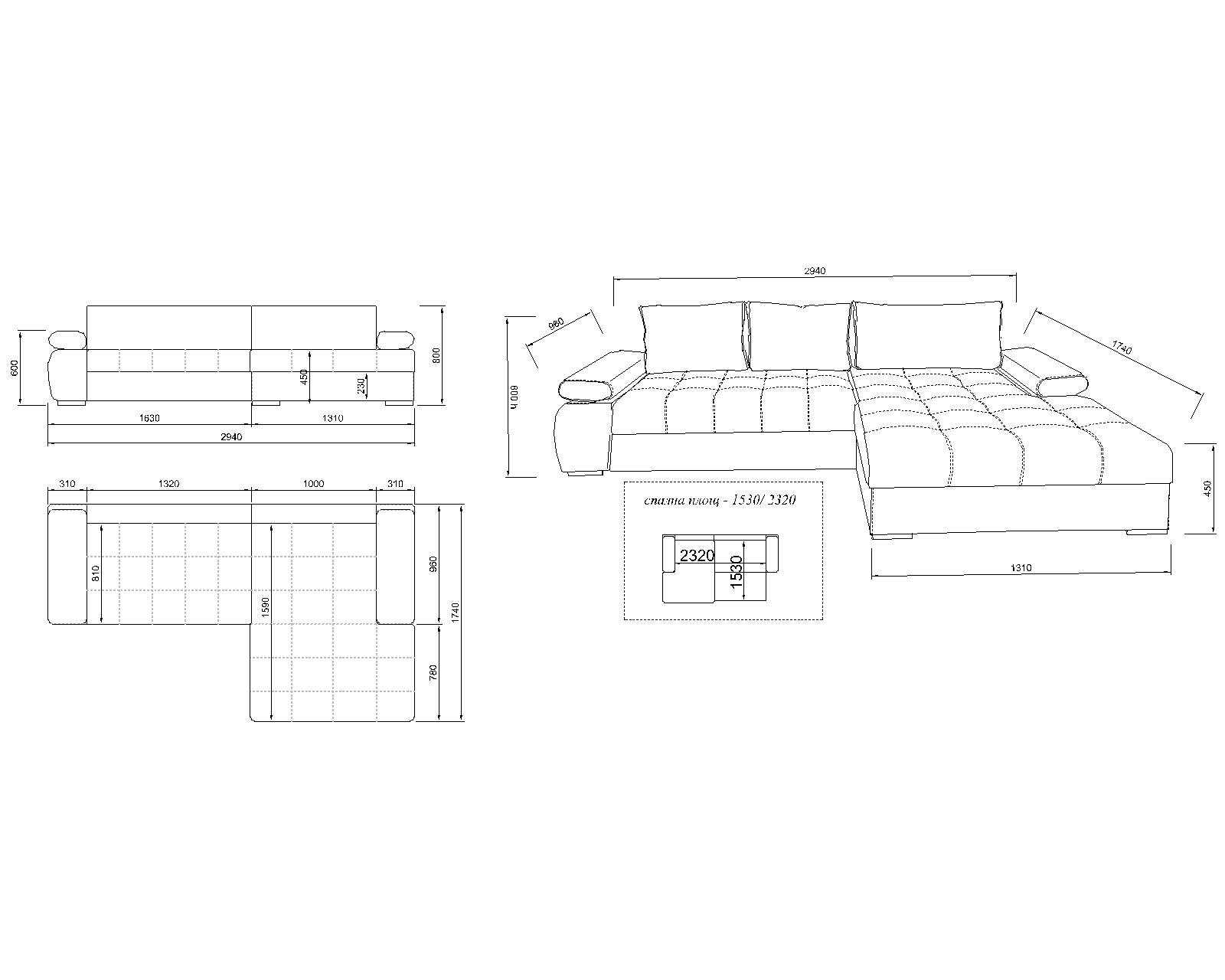 Спална площ: 153/232 см.