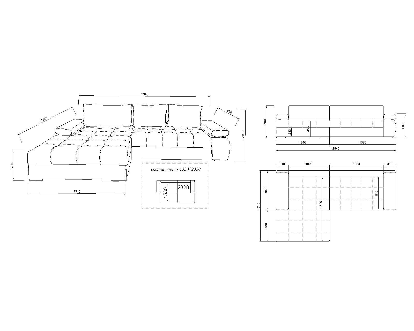 Размери: 294/174/80 см.