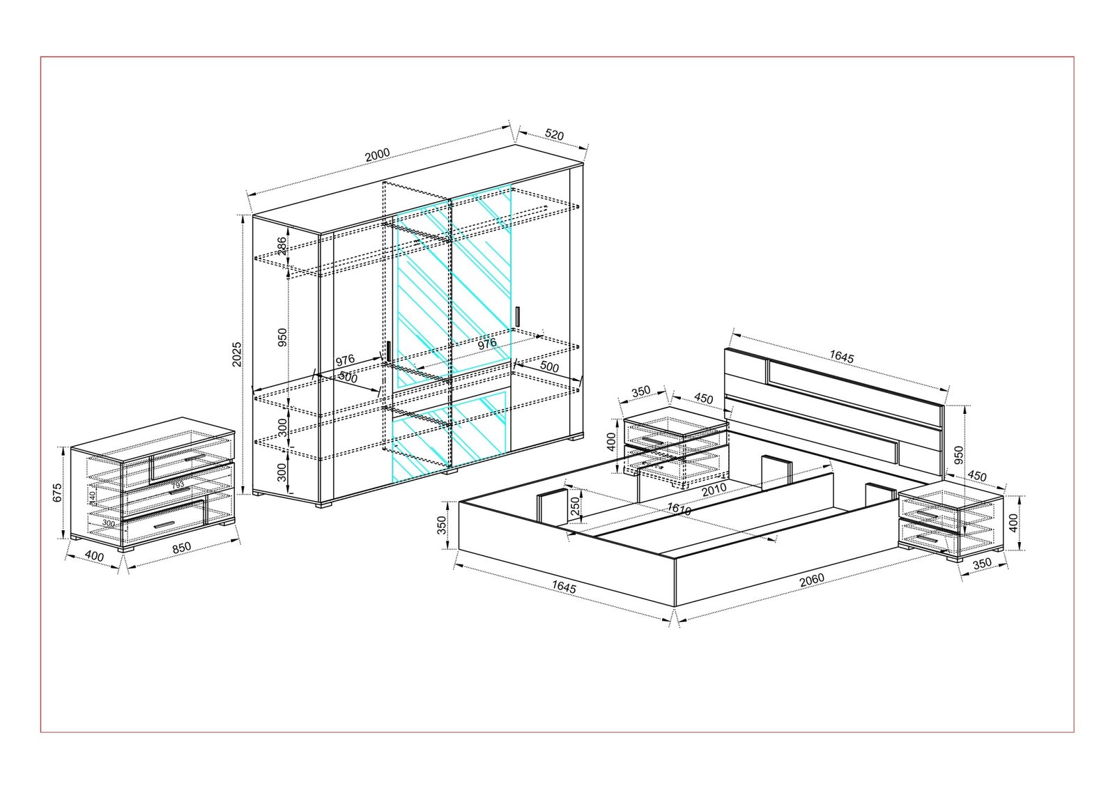 Нощни шкафчета: 450/355/400 мм.