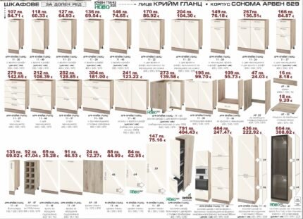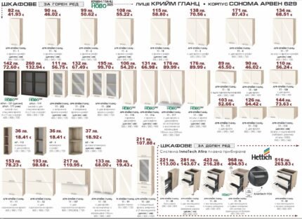 Модули горен ред: АРФ-Крийм гланц-11-4; АРФ-Крийм гланц-11-13; АРФ-Крийм гланц-11-3; АРФ-Крийм гланц-11-4; АРФ-Крийм гланц-11-4; АРФ-Крийм гланц-11-3; АРФ-Сонома-02-111; АРФ-Крийм гланц-11-108; АРФ-Крийм гланц-11-109; АРФ-Крийм гланц-11-109; АРФ-Крийм гланц-11-108; АРФ-Крийм гланц-11-108; АРФ-Крийм гланц-11-109; АРФ-Сонома-02-111