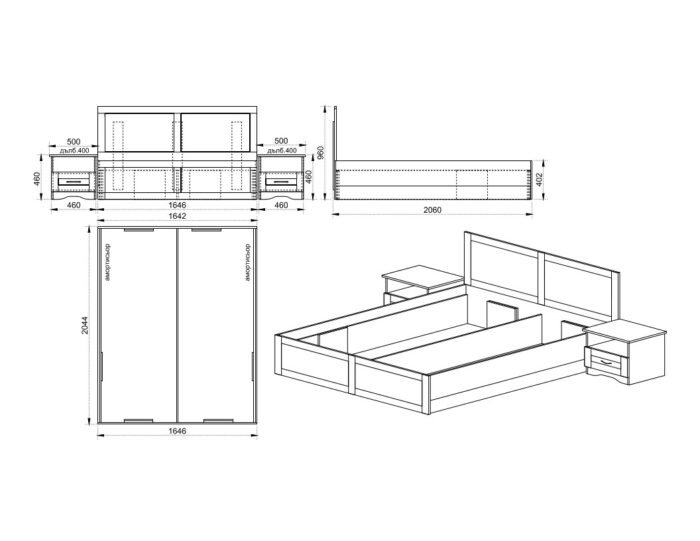 Спален к-т „Хана”(мод.1,2,3,4,5,6,7) за двойнолицев матрак (ламелна рамка)-цена 1316 лв./ 1495 лв.